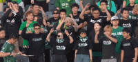 镜头转向客队看台,国安远征球迷现场呐喊助威