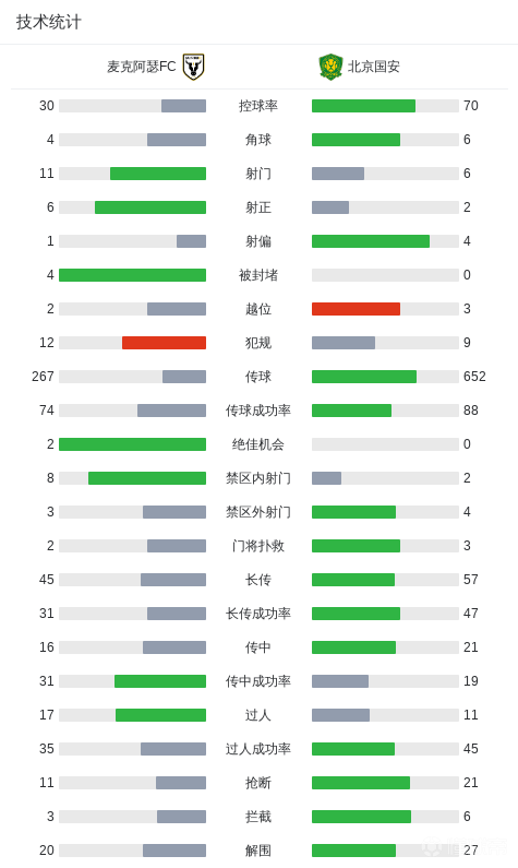 亚冠二级开局2轮仅1分,国安客场0-3麦克阿瑟FC,全队仅2次射正