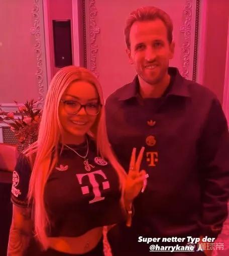 欧冠踢完那场,凯恩跟队友们出去搓了一顿,庆祝胜利。聚会现场,凯恩跟个搞低俗说唱的德国网红女歌手拍了张照。这网红叫卡特娅-克拉萨维采,29岁。她在社交平台上发了张照片,照片里她站在凯恩旁边,俩人对着镜头傻乐,卡特娅还配了句话:“哈里凯恩这哥们儿人超好。”